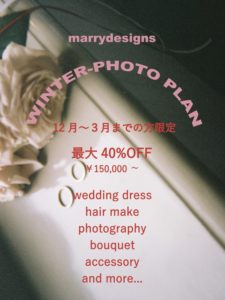 フォトウェディングや前撮りは、11月頃からは比較的まだ空きがあります。
