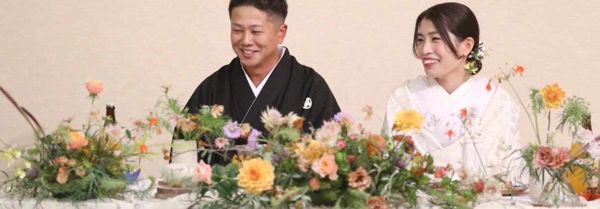 皆で美味しい料理を楽しみながら、地元を大切に思うお二人らしさ満載の涙あり、笑いありのとても素晴らしい披露宴となりました。