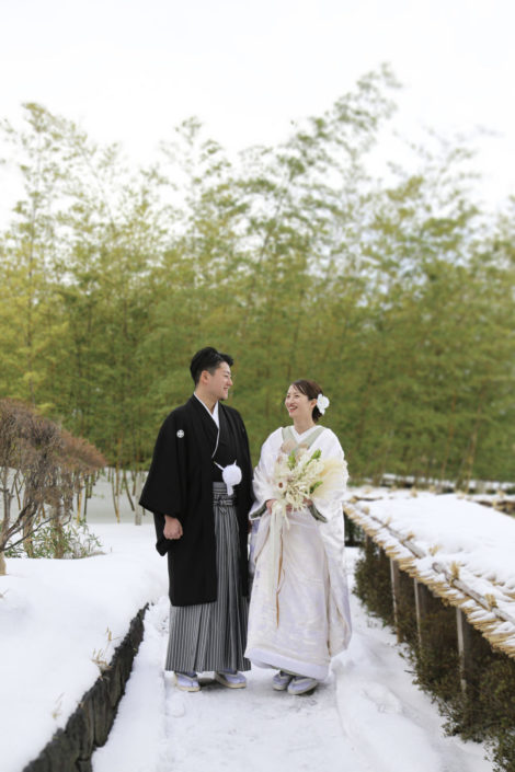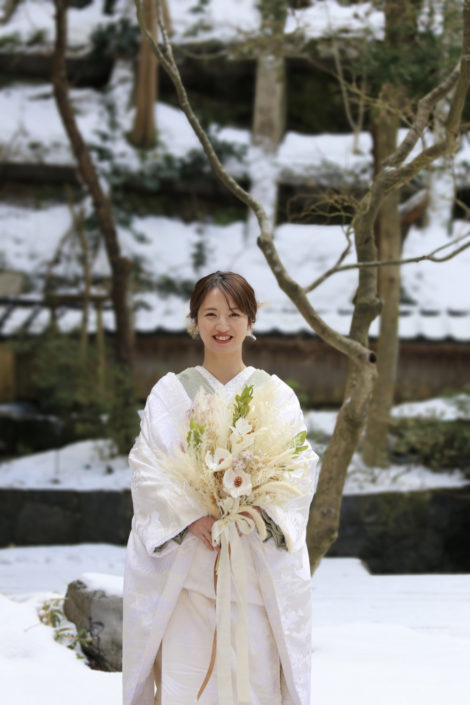 雪の中での和装前撮りから桜舞う春の結婚式まで