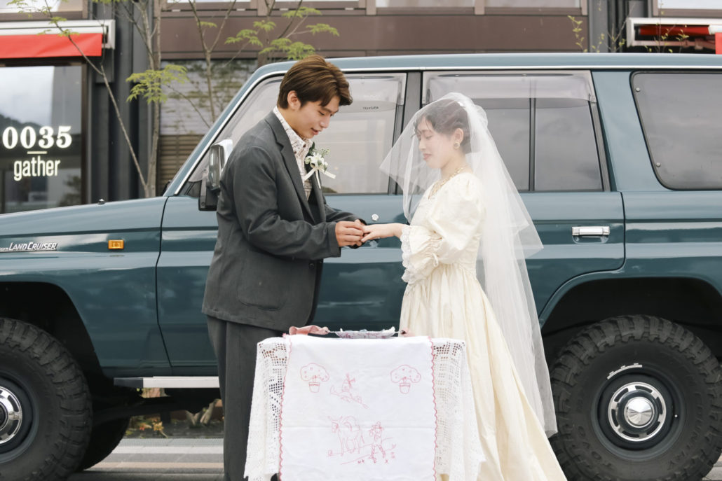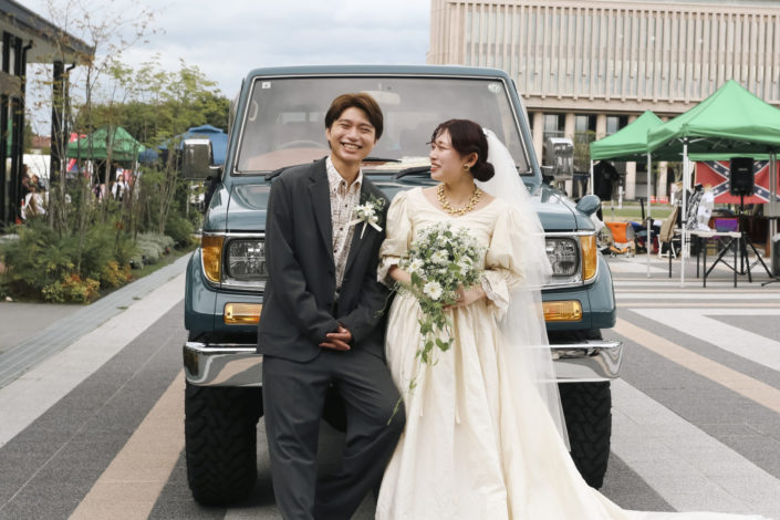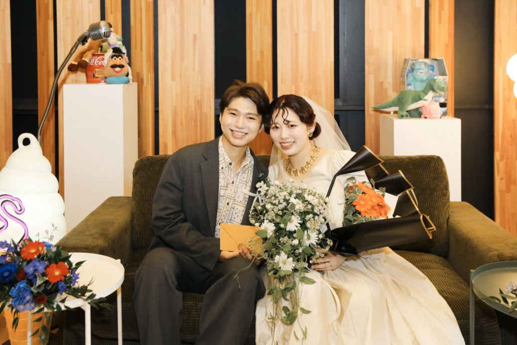 新婦のウェディングドレスも本物のビンテージドレスを着用し、新郎新婦の好きがたくさん詰まった、そしてお世話になった方々やご友人と一緒に創り上げた唯一無二のオリジナルウェディングとなりました!