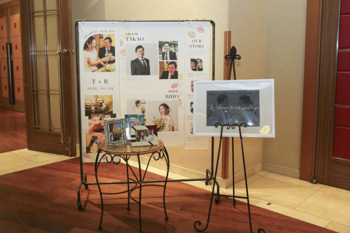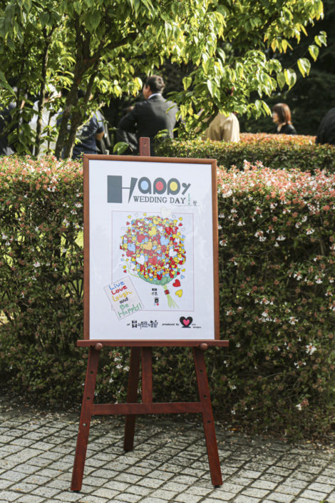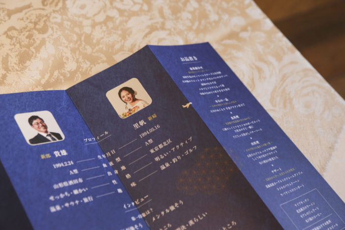 席次表や席札などのペーパーアイテムは新郎新婦のご友人のグラフィックデザイナーにお願いし、お二人らしさや今回の結婚式のテーマに合うオリジナルのデザインを。